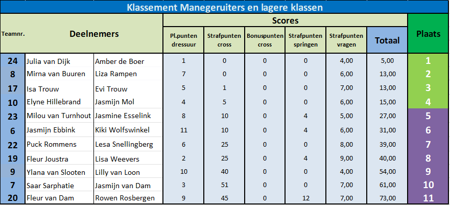 Winnaars Wedstrijdruiters L en hoger & Gevorderdenklassement: